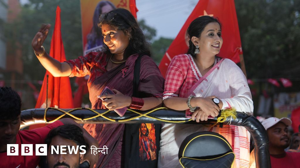 इमेज कैप्शन, दमदम उत्तर विधानसभा क्षेत्र में सीपीआई (एम) की उम्मीदवार दीपसीता धर (बाएं) कैंपेन के दौरान ….में पश्चिम बंगाल…