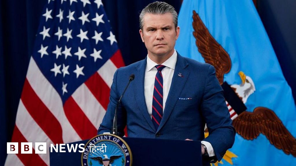 इमेज कैप्शन, पीट हेगसेथ ने ईरानी युद्धपोत को डुबोने की घोषणा की है