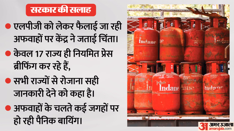 एलपीजी की उपलब्धता को लेकर फैल रही अफवाहों पर केंद्र सरकार ने चिंता जताई है। पेट्रोलियम व प्राकृतिक गैस मंत्रालय (MoPNG) ने सभी राज्यों और केंद्र शासित प्रदेशों के मुख्य सचिवों को पत्र लिखकर कहा है कि सिर्फ 17 राज्य/केंद्र शासित प्रदेश ही नियमित प्रेस ब्रीफिंग कर रहे हैं, जो स्थिति को संभालने के लिए पर्याप्त नहीं है।