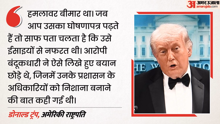 ट्रंप ने कहा आरोपी बंदूकधारी ने ऐसे लिखे हुए बयान छोड़े थे जिनमें उनके प्रशासन के अधिकारियों को निशाना बनाने की बात कही गई थी। ट्रंप ने कहा कि संदिग्ध के परिवार ने घटना से पहले कनेक्टिकट पुलिस को उसको लेकर चिंता जताई थी।