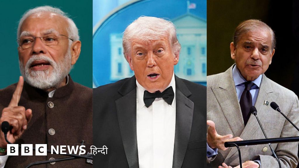 इमेज कैप्शन, भारत के प्रधानमंत्री नरेंद्र मोदी और पाकिस्तान के पीएम शहबाज़ शरीफ़ ने ट्रंप की डिनर पार्टी में हुई फ़ायरिंग के बाद बयान जारी किया
