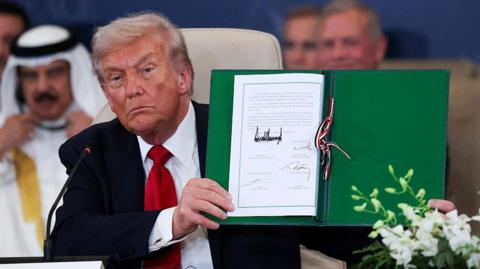 अमेरिकी राष्ट्रपति डोनाल्ड ट्रंप और मिस्र, क़तर और तुर्की के नेताओं ने ग़ज़ा में शांति की बहाली के लिए एक घोषणा-पत्र पर हस्ताक्षर किए हैं.