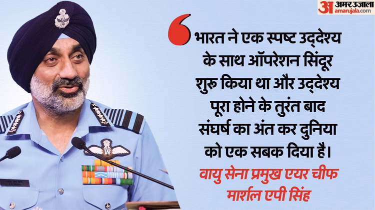 ऑपरेशन सिंदूर पर, भारतीय वायु सेना प्रमुख एयर चीफ मार्शल अमर प्रीत सिंह ने कहा, ‘भारतीय सशस्त्र बलों को संघर्ष को लेकर साफ निर्देश थे। यह एक सबक है जो इतिहास में दर्ज होगा कि यह एक ऐसा युद्ध था जो एक बहुत ही स्पष्ट उद्देश्य से लड़ा गया था और लक्ष्य हासिल होने के बाद इसे बिना आगे बढ़ाए हुए तेजी से समाप्त कर दिया गया। हम देख रहे हैं कि दुनिया में क्या हो रहा है, दो युद्ध चल रहे हैं और फिलहाल उनके खत्म होने की कोई बात नहीं चल रही है। लेकिन हमने लड़ाई को उस स्थिति में पहुंचाया, जहां वे हमसे युद्धविराम की मांग करें। इसके बाद हमने एक राष्ट्र के रूप में संघर्ष को समाप्त करने का फैसला लिया क्योंकि हमने जिन उद्देश्यों से लड़ाई शुरू की थी, वो पूरे हो चुके थे। मुझे लगता है कि ये कुछ ऐसा है, जिसे दुनिया को हमसे सीखने की जरूरत है।’
