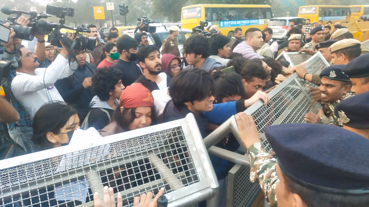 उसके बाद पुलिस प्रदर्शन कर रहे प्रदर्शनकारियों को वहां से हटाने लगी। आरोप है कि इस दौरान प्रदर्शनकारियों ने पुलिस टीम पर पेपर स्प्रे का इस्तेमाल करने लगे, जिससे वहां अफरा-तफरी मच गई और पुलिस और प्रदर्शनकारी के बीच हल्की झड़प हो गई। पुलिस अधिकारी ने बताया कि पेपर स्प्रे किए जाने से तीन से चार पुलिसकर्मी घायल हो गए। उन्होंने आंखों में जलन की शिकायत की। उन्हें तुरंत पास के आरएमएल अस्पताल में भर्ती कराया गया। सभी पुलिसकर्मी का अस्पताल में इलाज चल रहा है।