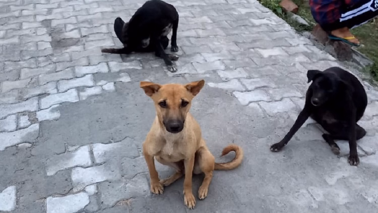 गली में घूमते आवार कुत्ते
