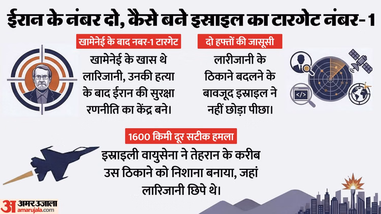 नेतन्याहू के इस बयान से साफ है कि ईरान में लारिजानी का कद कितना बड़ा था। रिपोर्ट्स के मुताबिक, अपने इस कद के कारण ही लारिजानी शुरुआत से ही अमेरिका और इस्राइल की रडार पर थे, लेकिन दोनों ही देश बीते दो हफ्तों में उन पर हमले का मौका हासिल नहीं कर पाए थे। इसके बाद 16 मार्च की देर रात जैसे ही इस्राइल को लारिजानी की गतिविधि के बारे में जानकारी मिली, उन्हें निशाना बनाया गया।