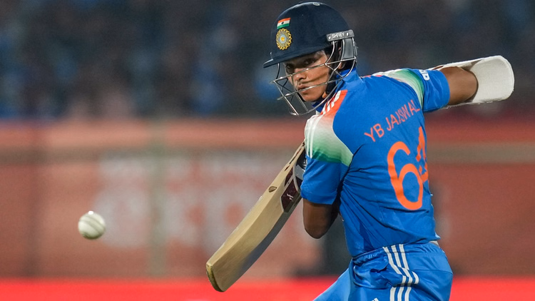 यशस्वी जायसवाल ने 75 गेंदों में इस प्रारूप में अपना पहला अर्धशतक पूरा किया। वह रोहित शर्मा के साथ पहले विकेट के लिए 130 रन की साझेदारी निभा चुके हैं।