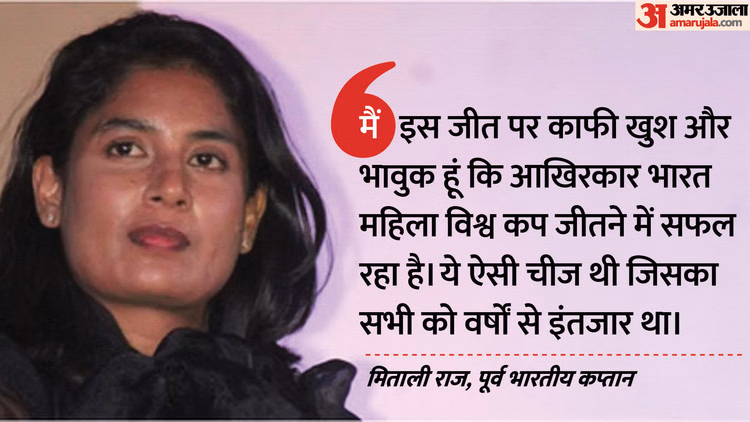 भारतीय महिला टीम की पूर्व कप्तान मिताली राज वनडे विश्व कप में भारत को मिली खिताबी जीत पर गदगद हो गई हैं। भारत ने रविवार को नवी मुंबई में खेले गए खिताबी मुकाबले में दक्षिण अफ्रीका को 52 रनों से हराकर पहली बार विश्व कप का खिताब अपने नाम किया। हरमनप्रीत कौर की अगुआई वाली टीम ने वो उपलब्धि हासिल कर ली, जो अब तक महिला क्रिकेट में भारत के लिए कोई नहीं कर सका था। भारत के लिए ये जीत कितनी महत्वपूर्ण है इसका अंदाजा इस बात से ही लगाया जा सकता है कि मिताली टीम को बधाई देते वक्त भावुक हो गईं।