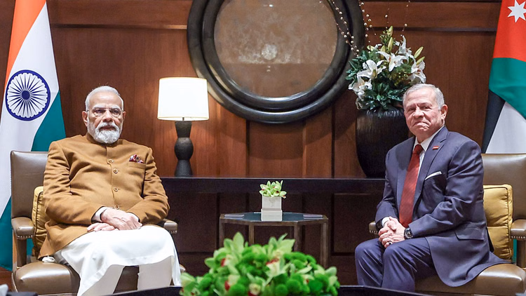 प्रधानमंत्री मोदी दो दिवसीय यात्रा पर जॉर्डन पहुंचे, जहां उनका हुसैनिया पैलेस में गर्मजोशी से स्वागत किया गया। पहले दोनों नेताओं के बीच आमने-सामने बातचीत हुई, इसके बाद प्रतिनिधिमंडल स्तर की वार्ता हुई। बातचीत में द्विपक्षीय संबंधों के साथ-साथ क्षेत्रीय और वैश्विक मुद्दों पर भी विचार-विमर्श हुआ। दोनों नेताओं ने आतंकवाद के खिलाफ साझा रुख को दोहराया और सहयोग बढ़ाने पर सहमति जताई।