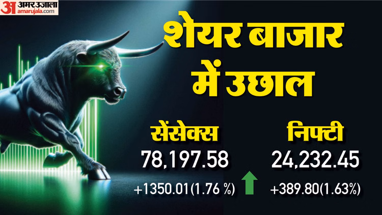 एक दिन की छुट्टी के बाद घरेलू शेयर बाजार में बुधवार के कारोबारी सत्र की शुरुआत हरे निशान पर हुई। सेंसेक्स में 1,350 अंक से अधिक की तेजी देखी गई, वहीं निफ्टी 24,200 के पार पहुंचने में सफल रहा। बैंक और रियल्टी इंडेक्स में 2% का उछाल दिखा। ईरान-अमेरिका के बीच शांति वार्ता की नई उम्मीदों समेत कई अन्य कारकों ने बाजार में बढ़त को बढ़ावा दिया।