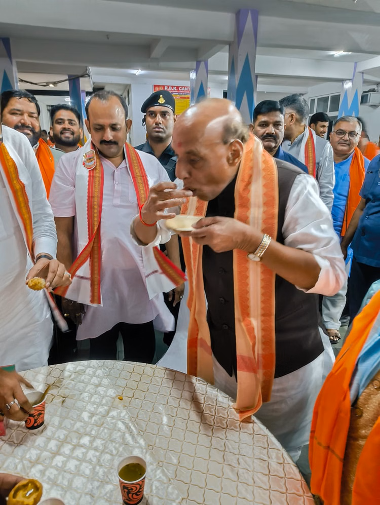 UP: राजनाथ ने चखी लखनवी चाट, चाव से खाए पानी बताशे; दिवाली समारोह में कार्यकर्ताओं से खुलकर मिले रक्षा मंत्री
