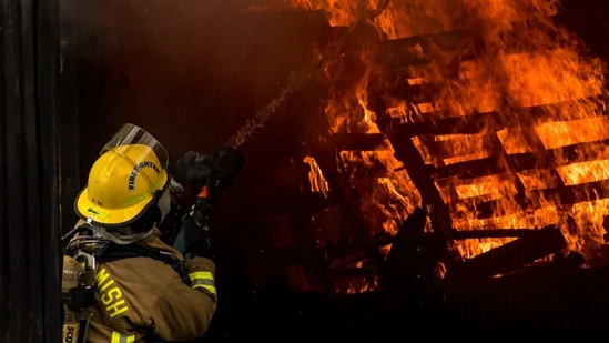 The video showed white smoke rising to the sky. A person also shared a photo which showed flames on the roof as firefighters attempted to put it out. Two personnel could be seen on a crane-like structure battling the blaze.