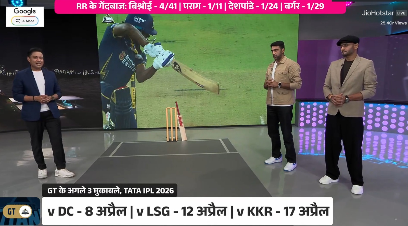 Rajasthan Royals moved to the top of the table in TATA IPL 2026 after their second consecutive win, beating Gujarat Titans in a thriller. Speaking on JioHotstar’s ‘Google Search AI Mode Match Centre Live’, JioStar experts Harbhajan Singh, Irfan Pathan, and Ravichandran Ashwin discussed the death-bowling masterclass from Jofra Archer and Tushar Deshpande, as well as Sai Sudharsan’s valiant effort for GT.