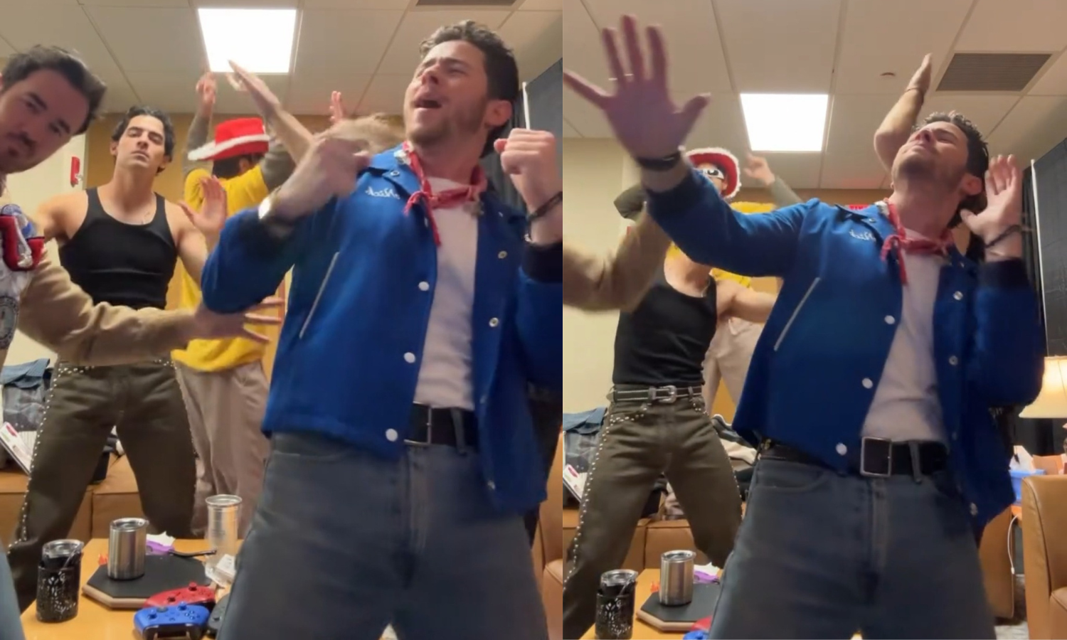 In a clip shared on Instagram, Nick Jonas, along with brothers Kevin and Joe, grooves to the newly released energetic number, Shararat. In the caption, he wrote, “New pre show hype song unlocked,”