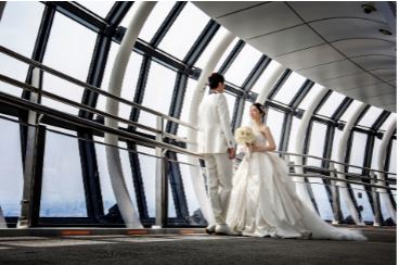 The Wedding Photo Plan at TOKYO SKYTREE allows couples to book private photo sessions – either before opening or after closing hours. With the beautiful view overlooking Tokyo as your backdrop and the observation deck all to yourself, it is a setting that turns moments into forever.