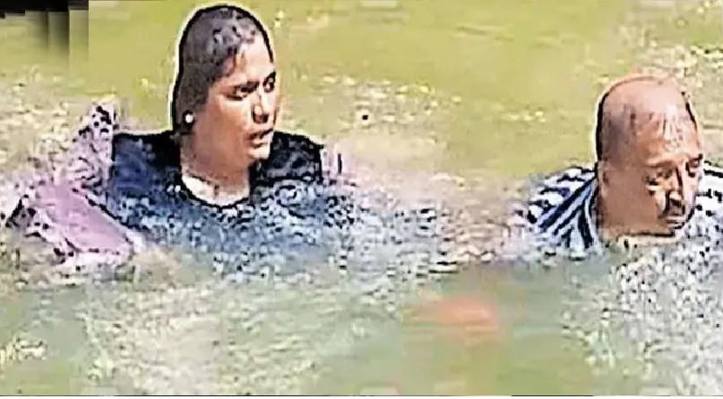 വാഹനത്തിനൊപ്പം ഇവരും പുഴയില് മുങ്ങിയെങ്കിലും ഇറുവരും നീന്തി കരയില് കയറി.നഗരസഭ ചെയര്മാന് പി.എന്.സുരേന്ദ്രന് വാഹനത്തിന്റെ ഫ്ലാഗ് ഓഫ് നടത്തിയ ഉടനെ വാഹനം മുന്നോട്ടെടുക്കാനുള്ള ശ്രമത്തിനിടയില് നിയന്ത്രണം നഷ്ടപ്പെട്ട് മുന്നോട്ടു കുതിച്ച് പുഴയില് വീഴുകയായിരുന്നു. വാഹനത്തിന്റെ മുമ്പില് ആരും ഇല്ലാതിരുന്നതും ആശ്വാസമായി. വാഹനം പിന്നീട് കരയ്ക്കു കയറ്റി.നഗരസഭയുടെ പുനരുപയോഗിക്കാവുന്ന സാധന സാമഗ്രികളുടെ കൈമാറ്റക്കടയുടെ ആവശ്യങ്ങള്ക്കായി വാങ്ങിയതായിരുന്നു ഈ വാഹനം.