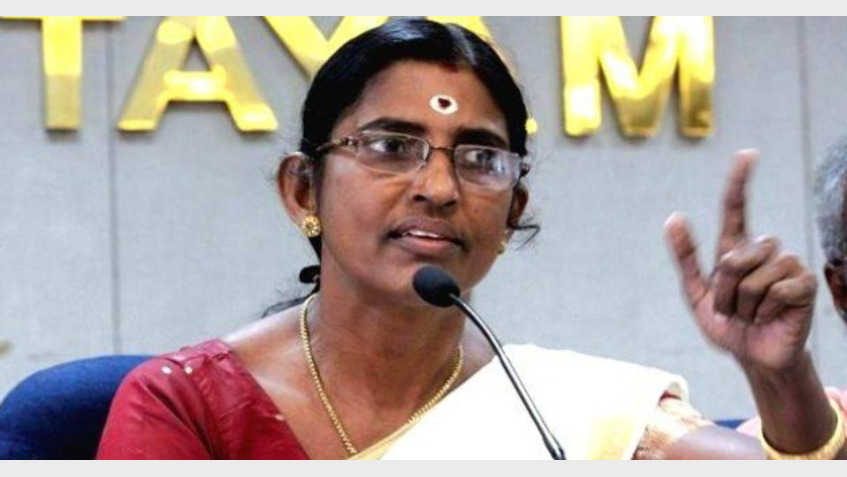 തൃപ്രയാർ ക്ഷേത്രത്തിൽ തിടമ്പ് അടക്കം മോഷണം പോയിട്ട് 17 വർഷം കഴിഞ്ഞു. അതേക്കുറിച്ച് ഒരു അന്വേഷണവുമില്ല. ഒരു കള്ളനാണ് ഇത് മോഷ്ടിച്ചതെങ്കിൽ കേരള പോലീസ് തൊണ്ടി സഹിതം കള്ളനെ പിടികൂടുമായിരുന്നു. എന്നാൽ ഉടമസ്ഥൻ തന്നെ ഭരണകൂടത്തിന്റെ സഹായത്തോടെ നടത്തുന്ന മോഷണങ്ങൾ കേരള പോലീസ് അന്വേഷിച്ചാൽ പ്രതികളെ കിട്ടില്ലെന്നും ടീച്ചർ കുറ്റപ്പെടുത്തി.