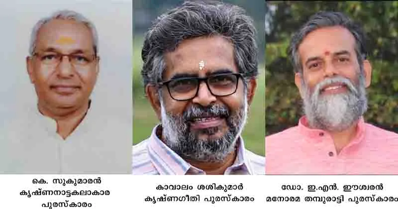 നവംബർ -4 ന് കോഴിക്കോട് തളി ഗുരുവായൂരപ്പൻ ഹാളിൽ നടക്കുന്ന രേവതി പട്ടത്താന സദസ്സിൽ പുരസ്കാരങ്ങൾ സമ്മാനിക്കും. വെങ്കലത്തിൽ തീർത്ത കൃഷ്ണശിൽപ്പവും, പ്രശസ്തിപത്രവും 15,000 രൂപയും ഉൾപ്പെട്ടതാണ് മൂന്ന് പുരസ്കാരങ്ങളും.