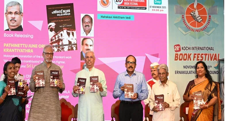 കൊച്ചി: ഗോവന് വിമോചന സമരം ഗഹനമായ പഠനത്തിന് വിധേയമാക്കണമെന്നും അതിന് നേതൃത്വം നല്കിയ വീര ദേശാഭിമാനികളില് നിന്നും ആവേശം ഉള്ക്കൊള്ളണമെന്നും ഗവര്ണര് രാജേന്ദ്ര വിശ്വനാഥ ആര്ലേക്കര് .കൊച്ചി അന്താരാഷ്ട്ര പുസ്തകോത്സവ വേദിയില് പതിനെട്ട് ജൂണ് – ഒരു ക്രാന്തി യാത്ര എന്ന പുസ്തകത്തിന്റെ പ്രകാശനം നടത്തി സംസാരിക്കുകയായിരുന്നു അദ്ദേഹം.
