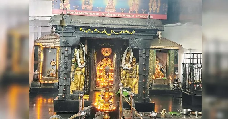 ശ്രീകോവിലിന്റെ മധ്യത്തിലുള്ള ശാസ്താ പ്രതിഷ്ഠ വലതു കൈയില് ശിവലിംഗവും, ഇടതുകാല് വളച്ച് രണ്ടു വശത്തേക്ക് ഒരു അരപ്പട്ടയും വച്ചിരിക്കുന്നു. ശാസ്താ പ്രതിഷ്ഠയില് സാധാരണയായി വലതു കൈയില് അഭയ മുദ്രയ്ക്ക് പകരം ശിവലിംഗം കാണപ്പെടുന്ന വളരെ അപൂര്വമായ പ്രതിഷ്ഠയാണിത്.