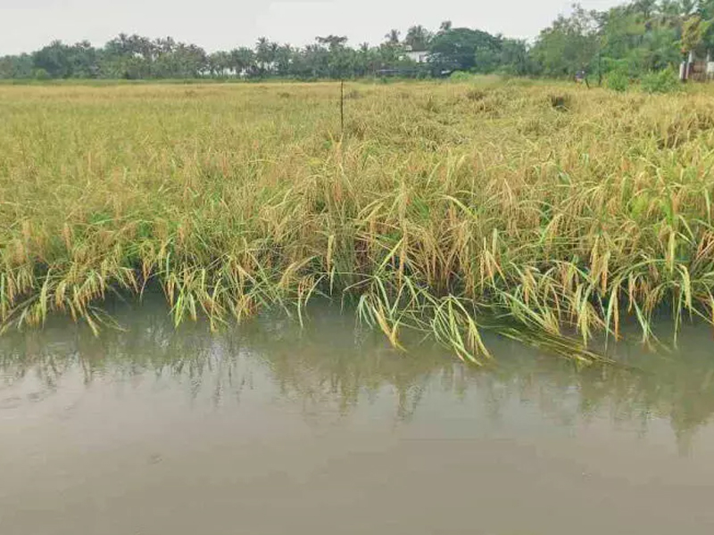 എന്നാല് വ്യാഴാഴ്ച രാത്രിയും വെള്ളിയാഴ്ച കൊയ്ത്ത് പൂര്ണമായും നിലച്ചു. നല്ല വെയില് കിട്ടിയാല് മാത്രമേ ഇതിനകം കൊയ്തെടുത്ത നെല്ലുകള് മെതിക്കാനാകൂ. യന്ത്രങ്ങള് കൈപ്പാടുകളില് ഉപയോഗിക്കാന് പ്രായോഗികമല്ലാത്തതും കൊയ്ത്ത് ബുദ്ധിമുട്ടാക്കുന്നുണ്ട്.ഏഴോം പഞ്ചായത്തില് കരനെല്കൃഷിയും കൈപ്പാട് കൃഷിയുമായി ഏകദേശം 300 ഏക്കര് നെല്കൃഷിയാണ് നടക്കുന്നത്. ഈ വര്ഷം കാലവര്ഷം നീണ്ടുനിന്നതും മഴയിലെ വ്യതിയാനങ്ങളും കൃഷിക്ക് വെല്ലുവിളിയായെങ്കിലും വിളവെടുത്ത പ്രദേശങ്ങളില് മികച്ച ഉല്പാദനം ലഭിച്ചതോടെ കര്ഷകര് പ്രതീക്ഷയിലായിരുന്നു. എന്നാല് ഇപ്പോഴത്തെ ശക്തമായ തുലാമഴ അതിനെ പ്രതിസന്ധിയിലാക്കുകയാണ്.