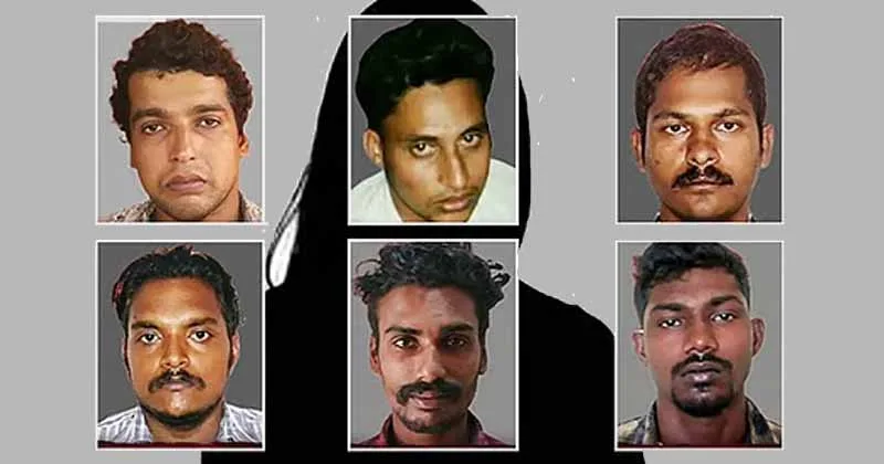ഒന്നാം പ്രതി പള്സര് സുനി, രണ്ടാം പ്രതി മാര്ട്ടിന് ആന്റണി, മൂന്നാം പ്രതി തമ്മനം മണി എന്ന ബി.മണികണ്ഠന്, നാലാം പ്രതി വി.പി.വിജീഷ്, അഞ്ചാം പ്രതി വടിവാള് സലിം എന്ന എച്ച്.സലിം, ആറാം പ്രതി പ്രദീപ് എന്നിവരാണ് ആറ് പ്രതികള്. ഒന്നാം പ്രതി പൾസർ സുനിക്ക് ഐടി ആക്ട് പ്രകാരം അഞ്ച് വർഷത്തെ അധിക ശിക്ഷയുണ്ട്. ഈ ശിക്ഷ ഒരുമിച്ച് അനുഭവിച്ചാൽ മതി. മാത്രമല്ല, പ്രതികളുടെ റിമാൻഡ് കാലാവധി ശിക്ഷയിൽ നിന്ന് കുറയ്ക്കും.