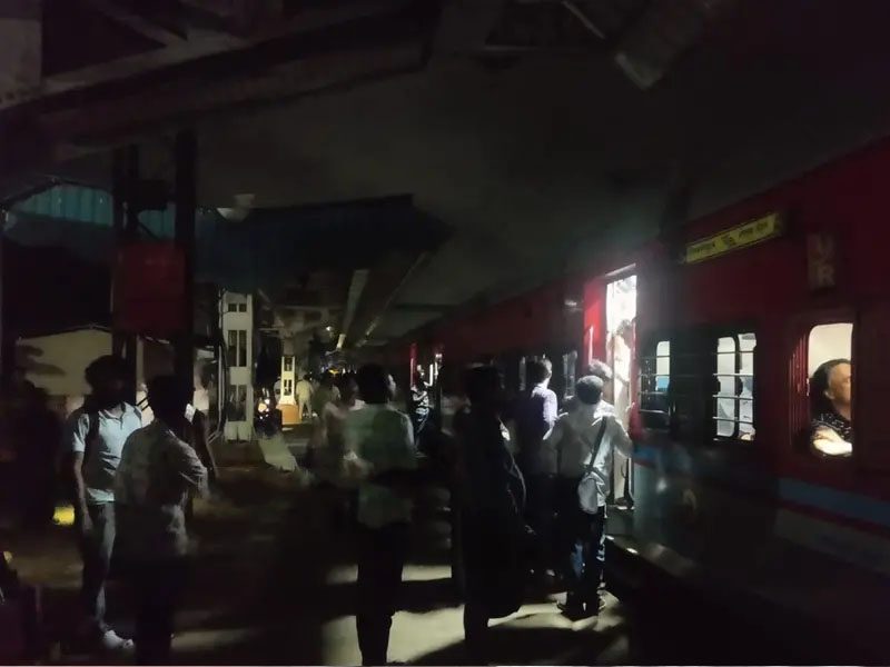 രാത്രി 7.08ന് മംഗലാപുരം-തിരുവനന്തപുരം എക്സ്പ്രസ് സ്റ്റേഷനിലെത്തുമ്പോള് വെളിച്ചമില്ലാത്ത സാഹചര്യമായിരുന്നു. വെയിറ്റിങ് ഹാളുകളിലോ പ്ലാറ്റ്ഫോമുകളിലോ ഫൂട്ട് ഓവര്ബ്രിഡ്ജിലോ വെളിച്ചമുണ്ടായിരുന്നില്ല. ടിക്കറ്റ് കൗണ്ടറിന് സമീപവും സ്റ്റേഷന് മാസ്റ്ററിന്റെ ഓഫീസിലും മാത്രമായിരുന്നു ആകെ വെളിച്ചമുണ്ടായിരുന്നത്. വൈദ്യുതി തടസ്സം സംഭവിച്ച് ഒരു മണിക്കൂര് പിന്നിട്ടിട്ടും സ്റ്റേഷനില് വെളിച്ചം പുനഃസ്ഥാപിച്ചിരുന്നില്ല.