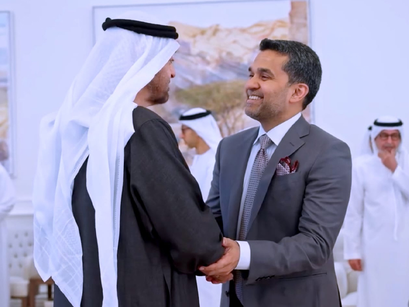 അബുദാബിയിലെ ഖസർ അൽ ബഹ്ർ കൊട്ടാരത്തിൽ എമിറേറ്റ്സ് ഓങ്കോളജി സൊസൈറ്റി പ്രസിഡന്റും ബുർജീൽ കാൻസർ ഇൻസ്റ്റിറ്റ്യൂട്ട് സിഇഒയുമായ പ്രൊഫസർ ഹുമൈദ് ബിൻ ഹർമൽ അൽ ഷംസിക്ക് നൽകിയ സ്വീകരണത്തിനിടെയായിരുന്നു കൂടിക്കാഴ്ച.