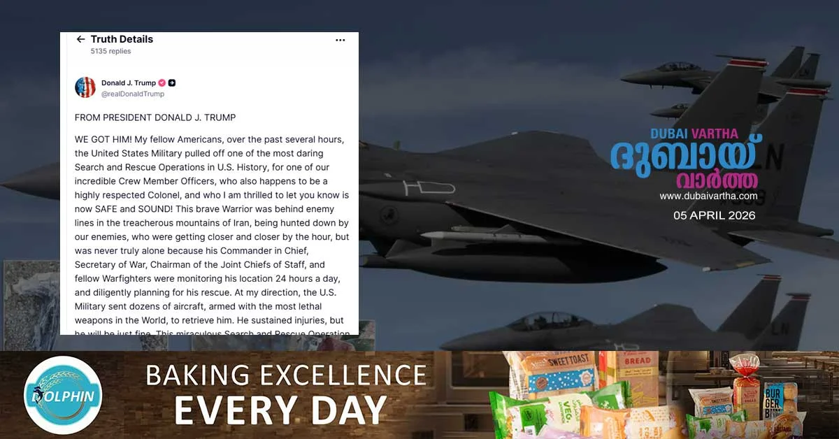 ഇറാനിൽ വെടിവെച്ചിട്ട അമേരിക്കയുടെ യുദ്ധവിമാനത്തിലെ പൈലറ്റിനെ തിരികെ എത്തിച്ചെന്ന് അവകാശപ്പെട്ട് ട്രംപ് – Dubai Vartha Skip to content error: Content is protected !! Related Post navigation അമേരിക്കൻ സൈന്യത്തിൽ ഭിന്നത; കരസേനാ മേധാവി ജനറൽ റാൻഡി ജോർജിനോട് രാജിവെക്കാൻ ആവശ്യപ്പെട്ടു – ഇവാർത്തകുവൈത്തിൽ വ്യാപക മിസൈൽ-ഡ്രോൺ ആക്രമണം; മന്ത്രാലയ സമുച്ചയവും ജല-വൈദ്യുത സ്റ്റേഷനുകളും ആക്രമിക്കപ്പെട്ടു