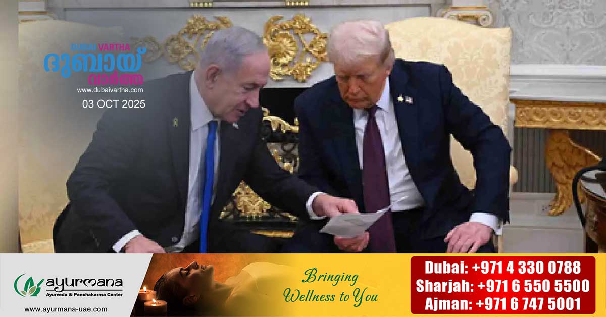 ഗാസയിലെ ഇസ്രയേൽ-ഹമാസ് യു ദ്ധം അവസാനിപ്പിക്കാനുള്ള ട്രംപിന്റെ സമാധാന പദ്ധതിക്ക് നരേന്ദ്ര മോദിയുടേത് ഉള്പ്പെടെ ആഗോള പിന്തുണ ലഭിച്ചെന്ന് വൈറ്റ് ഹൗസ് – Dubai Vartha Skip to content error: Content is protected !! Related Post navigation ദുരിത ജീവിതത്തിനൊടുവില് കണ്ണൂര് സ്വദേശി തുടര്ചികിത്സയ്ക്ക് നാട്ടിലേയ്ക്ക് മടങ്ങിA Celebration of Art, Culture, and Community