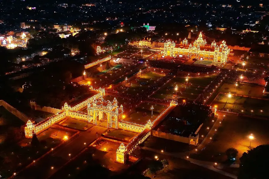 നവരാത്രി കാലത്തെ പത്ത് ദിവസങ്ങൾ ഈ നഗരത്തിൽ എവിടെത്തിരിഞ്ഞ് നോക്കിയാലും ദീപാലംകൃതമായിരിക്കും, പ്രകാശപൂരിതമായ മൈസൂർ കൊട്ടാരവും നഗരവീഥികളും തന്നെയാണ് മൈസൂർ ദസറയുടെ ഏറ്റവും മനോഹരമായ കാഴ്ച. ഇവയെ ഒന്നുകൂടി മാറ്റുകൂട്ടുന്നവയാണ് കൊട്ടാര പരിസരത്തെ നൃത്ത നൃത്ത്യങ്ങളും സംഗീതനിശകളും സാംസ്കരിക പരിപാടികളും. ദസറക്കാഴ്ചകൾ ആസ്വദിക്കാൻ ദിവസവും നഗരത്തിൽ ഒഴുകിയെത്തുന്നത് പതിനായിരങ്ങളാണ്. ദീപാലംകൃതവും വർണാഭവവുമായ മൈസൂരുവിന്റെ നഗരവീഥികളാണ് ദസറക്കാലത്ത് സഞ്ചാരികളെ ഇവിടേക്ക് ആകർഷിക്കുന്ന പ്രധാന ഘടകം.