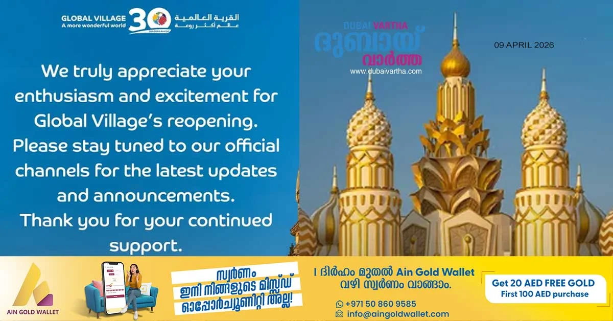 ദുബായ് ഗ്ലോബൽ വില്ലേജ് വീണ്ടും തുറക്കാനൊരുങ്ങുന്നു – Dubai Vartha Skip to content error: Content is protected !! Related Post navigation ‘എല്ലാവരും വോട്ട് ചെയ്യണം, നല്ലവരെ തിരഞ്ഞെടുക്കണം’; ഗവർണർകുഞ്ചാക്കോ ബോബൻ ചിത്രം ‘ഒരു ദുരൂഹ സാഹചര്യത്തിൽ’ ട്രെയിലർ പുറത്തിറങ്ങി