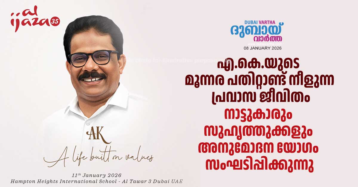 എ.കെ.യുടെ മൂന്നര പതിറ്റാണ്ട് നീളുന്ന പ്രവാസ ജീവിതം: നാട്ടുകാരും സുഹൃത്തുക്കളും അനുമോദന യോഗം സംഘടിപ്പിക്കുന്നു – Dubai Vartha