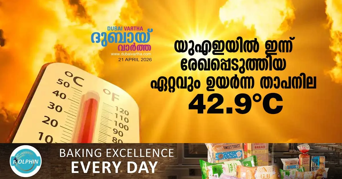യുഎഇയിൽ ഇന്ന് രേഖപ്പെടുത്തിയ ഏറ്റവും ഉയർന്ന താപനില 42.9°C – Dubai Vartha Skip to content error: Content is protected !! Related Post navigation പ്രായപൂര്ത്തിയാകാത്ത പെണ്കുട്ടിയെ കെണിയില്പ്പെടുത്തി; മനുഷ്യക്കടത്ത് കേസില് യുവതി അറസ്റ്റില്തൃശൂര് പൂരം വെടിക്കെട്ടിനുള്ള പടക്ക നിര്മാണശാലയിലുണ്ടായ സ്ഫോടനം; മരണം 13 ആയി