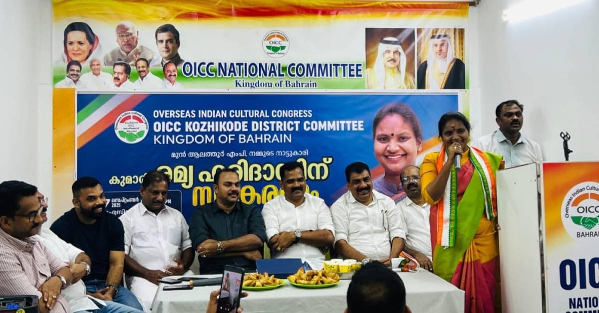 രമ്യ ഹരിദാസിന് ബഹ്റൈന് ഒഐസിസി കോഴിക്കോട് ജില്ലാ കമ്മറ്റി സ്വീകരണം നല്കി – Bahrain Vartha ബഹ്റൈൻ വാർത്ത Skip to content error: Content is protected !! Related Post navigation ദുബായ് സ്പോർട്സ് സിറ്റിയിൽ 3,000-ത്തിലധികം പുതിയ പെയ്ഡ് പാർക്കിംഗ് സ്ഥലങ്ങൾ പാർക്കിൻ തുറക്കുന്നുഏഷ്യാ കപ്പ് ഇന്ത്യയ്ക്ക് തരാം : പക്ഷെ ഒരു നിബന്ധനയുണ്ടെന്ന് ഏഷ്യൻ ക്രിക്കറ്റ് കൗൺസിൽ പ്രസിഡന്റ മൊഹ്സിൻ നഖ്വി