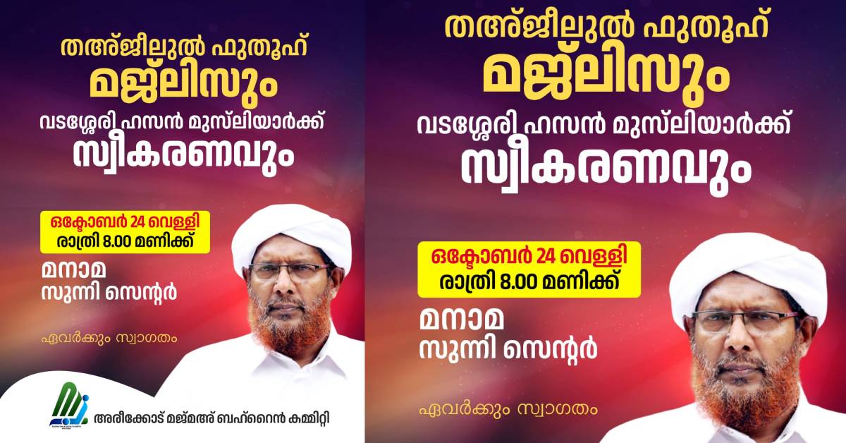 വടശ്ശേരി ഹസ്സന് മുസ്ല്യാര്ക്ക് സ്വീകരണം – Bahrain Vartha ബഹ്റൈൻ വാർത്ത Skip to content error: Content is protected !! Related Post navigation ദീപാവലി ആഘോഷം; പ്രവാസി മലയാളി വ്യവസായിയുടെ വീട്ടിലെത്തി ബഹ്റൈന് രാജകുടുംബാംഗംദിലീപ് ഫാന്സ് ബഹ്റൈന് ഓണാഘോഷം സംഘടിപ്പിച്ചു