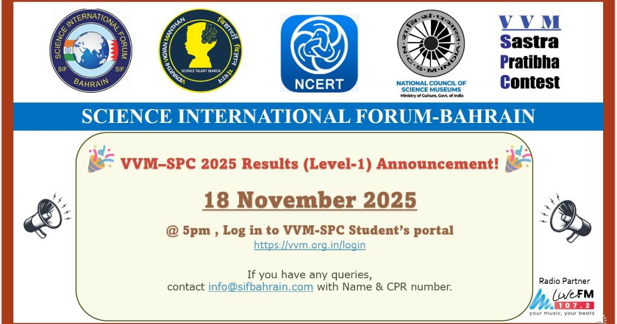 വിദ്യാര്ത്ഥി വിജ്ഞാന് മന്തന് ശാസ്ത്ര പ്രതിഭാ കോണ്ടെസ്റ്റ് ലെവല് 1 ഫലങ്ങള് നവംബര് 18 ന് – Bahrain Vartha ബഹ്റൈൻ വാർത്ത Skip to content error: Content is protected !! Related Post navigation ഹജ്ജ് വിസ ലഭിക്കൽ; ഹെൽത്ത് ഫിറ്റ്നസ് നിർബന്ധമെന്ന് സൗദി ആരോഗ്യ മന്ത്രിയുഎഇയിൽ സർക്കാർ സ്ഥാപനങ്ങളുടെ പേരിൽ വരുന്ന തട്ടിപ്പ് ഫോൺ കോളുകൾക്കെതിരെ മുന്നറിയിപ്പുമായി TDRA