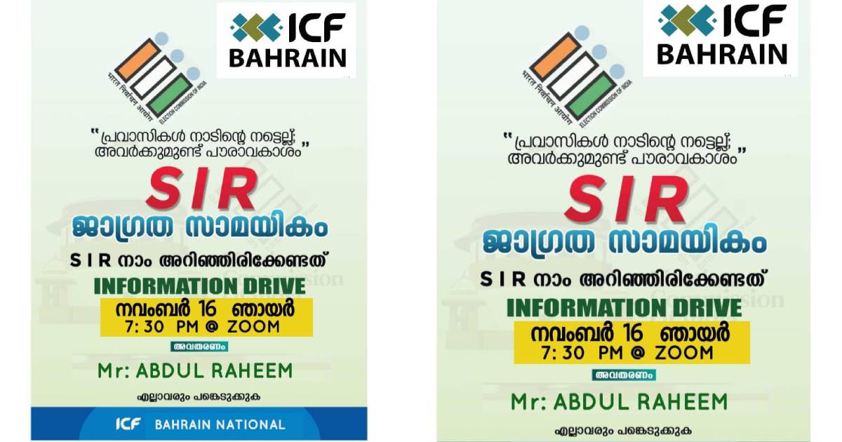 വോട്ടര് പട്ടിക പരിഷ്കരണം: ഐസിഎഫ് ബോധവല്കരണ സംഗമം ഇന്ന് – Bahrain Vartha ബഹ്റൈൻ വാർത്ത Skip to content error: Content is protected !! Related Post navigation സൗദിയിൽ ഇന്ത്യയിൽ നിന്നുള്ള ഉംറ തീർഥാടകർ സഞ്ചരിച്ച ബസിന് തീ പിടിച്ച് നാൽപ്പതോളം പേർ മരിച്ചതായി റിപ്പോർട്ടുകൾദുബായിൽ നോയ്സ് റഡാർ സംവിധാനം വ്യാപിപ്പിക്കുന്നു
