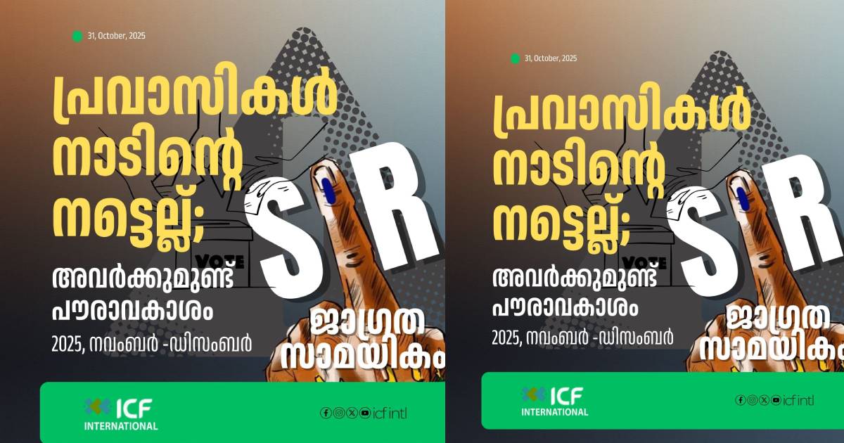 വോട്ടര് പട്ടിക പരിഷ്ക്കരണം: ജാഗ്രതാ കാമ്പയിനുമായി ഐസിഎഫ് – Bahrain Vartha ബഹ്റൈൻ വാർത്ത Skip to content error: Content is protected !! Related Post navigation തിരുവനന്തപുരത്ത് ലൈറ്റ് മെട്രൊ റെയിൽ; ആദ്യഘട്ട അലൈൻമെന്റിന് അംഗീകാരംഫ്രീലാൻസ് വിസ നൽകുന്നത് നിർത്തിവെച്ചുവെന്ന് പ്രചരിക്കുന്ന വാർത്ത വ്യാജമാണെന്ന് GDRFA