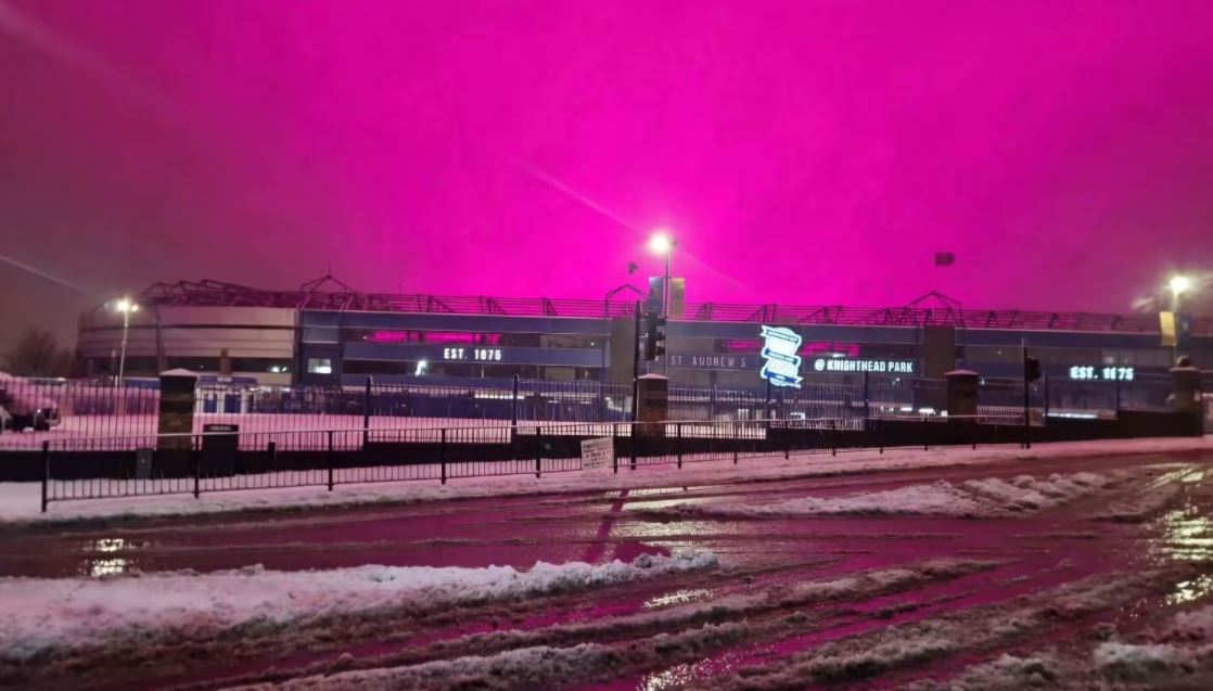 நகரில் உள்ள ஒரு காற்பந்து மைதானத்தில் பயன்படுத்தப்பட்ட இளஞ்சிவப்பு LED விளக்குகளே இந்த அபூர்வ காட்சிக்குக் காரணமாக அமைந்துள்ளன. தற்போது ஐரோப்பா முழுவதும் பனிக்காலம் நிலவுவதால், பர்மிங்ஹாமிலும் பனிப்பொழிவு மற்றும் அடர்ந்த மேகங்கள் காணப்படுகின்றன. இந்த பனியும் மேகங்களும் மைதானத்தில் இருந்து வெளிப்பட்ட இளஞ்சிவப்பு விளக்குகளின் ஒளியை பிரதிபலித்ததால், அந்த ஒளி நகரம் முழுவதும் பரவி வானமே இளஞ்சிவப்பாகத் தோன்றியுள்ளது.