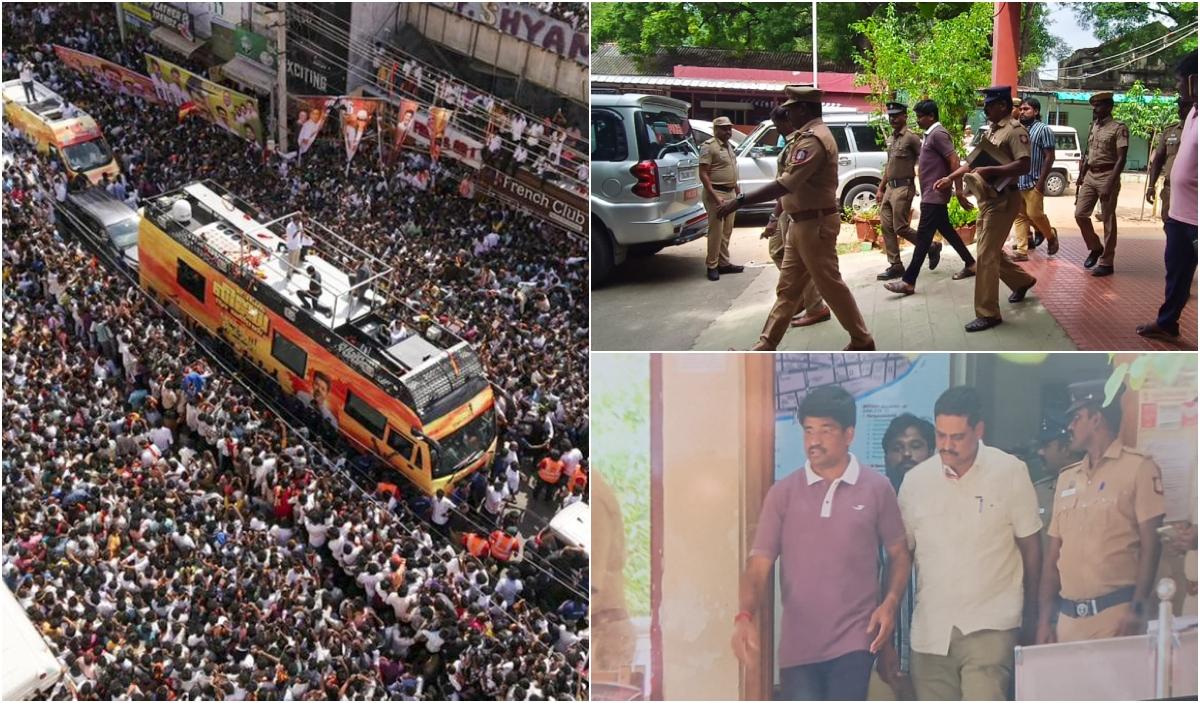 காரசார வாதம்: நீதிமன்றத்தில் காவல்துறை தரப்பில், ”கூட்டம் அளவு கடந்து சென்றதும் பேருந்தை முன்பே நிறுத்தச் சொல்லி நாங்கள் சொன்னோம் – ஆதவ் அர்ஜுனா கேட்கவில்லை. பிரச்சாரத்துக்கு வேலுச்சாமிபுரம் இடம் போதுமென்று புஸ்ஸி ஆனந்த் தான் கூறினார். அப்போதே அவர் அந்த இடம் வேண்டாம் என்று சொல்லியிருக்கலாமே. மேலும், நேர அட்டவணையை விஜய் கடைப்பிடிக்கவில்லை. ராங் ரூட்டில் சென்றார். விஜய் சொன்னபடி சரியான நேரத்தில் வந்திருந்தால் கூட்ட நெரிசலே ஏற்பட்டிருக்காது.” என்று தெரிவிக்கப்பட்டது.