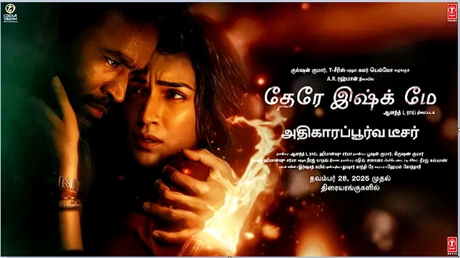 பான் இந்திய நட்சத்திர நடிகரான தனுஷ் நடிப்பில் தயாராகி இருக்கும் ‘தேரே இஷ்க் மே’ எனும் திரைப்படத்தின் டீசர் தமிழ் மற்றும் இந்தி மொழியில் வெளியிடப்பட்டிருக்கிறது.