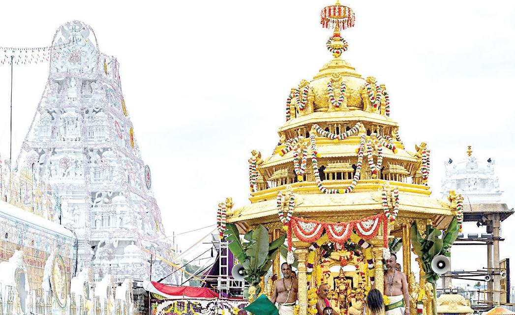திருமலை: திருப்பதி ஏழுமலையானின் தங்க ரதம் 28 டன் எடையில், 32 அடி உயரம் கொண்டதாகும். ஆண்டுக்கு 3 முறை மட்டுமே பக்தர்கள் இதனைக் காண இயலும்.