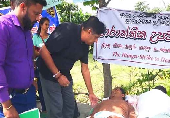 உண்ணாவிரதத்தில் ஈடுபட்டிருந்த இருவரின் உடல்நிலை பாதிக்கப்பட்டதைத் தொடர்ந்து, அவர்கள்ட வைத்தியசாலையில் அனுமதிக்கப்பட்டமை குறிப்பிடத்தக்கது.