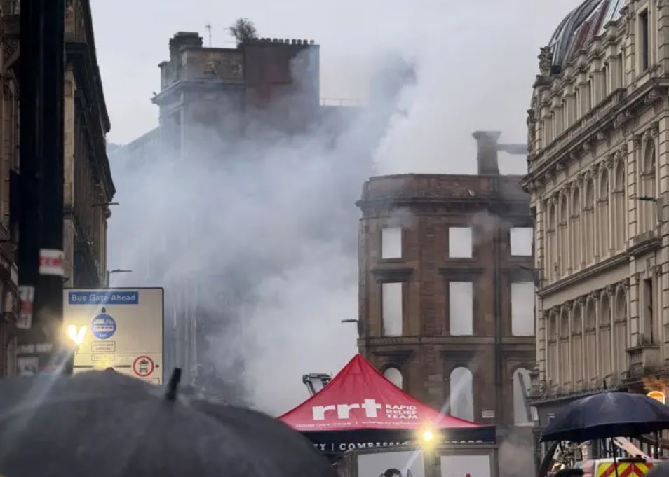 கிளாஸ்கோ சென்ட்ரல் ரயில் நிலையத்துக்கு அருகிலுள்ள ஒரு கட்டிடம் பெரும் தீ விபத்தால் இடிந்து விழுந்ததைத் தொடர்ந்து, ஸ்காட்லாந்தின் மிகவும் பரபரப்பான இந்த ரயில் நிலையத்தில் திங்கட்கிழமை அனைத்து ரயில் சேவைகளும் ரத்து செய்யப்பட்டுள்ளன.