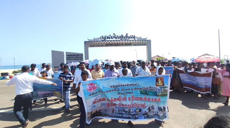 அந்த வகையில் முல்லைத்தீவு கடற்கரை வளாகத்திலிருந்து சட்டவிரோத கடற்றொழில் செயற்பாடுகள் மற்றும் இந்திய மீனவர்களின் அத்துமீறல் செயற்பாடுகள் உள்ளிட்ட மீனவ மக்களுக்கு பாதகமான விடயங்களை கட்டுப்படுத்தி பாரம்பரிய கடற்றொழிலாளர்களைப் பாதுகாப்பதுடன், கடல்வளத்தினையும் பாதுகாக்குமாறு வலியுறுத்தி ஆர்ப்பாட்டப் பேரணியொன்று வட மாகாண மீனவ மக்களால் முன்னெடுக்கப்பட்டது.