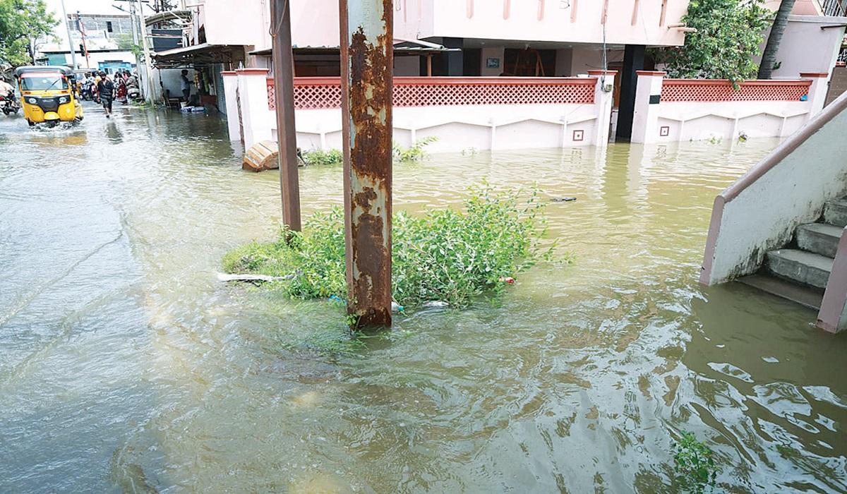 மதிநகர் செல்லும் பிரதான சாலை முழு வதும் மழை வெள்ளம் சூழ்ந்தது. கழிஞ்சூர் ஏரி கால்வாயிலிருந்து வெளியேறும் உபரிநீர் பாரதி நகர் பிரதான சாலை பகுதிகளில் முழங்கால் அளவுக்குச் சென்றதுடன், அப்பகுதியில் உள்ள வீடு களையும் மழைநீர் சூழ்ந்ததால் அப்பகுதி மக்களும் கடும் அவதிக் குள்ளாகினர்.