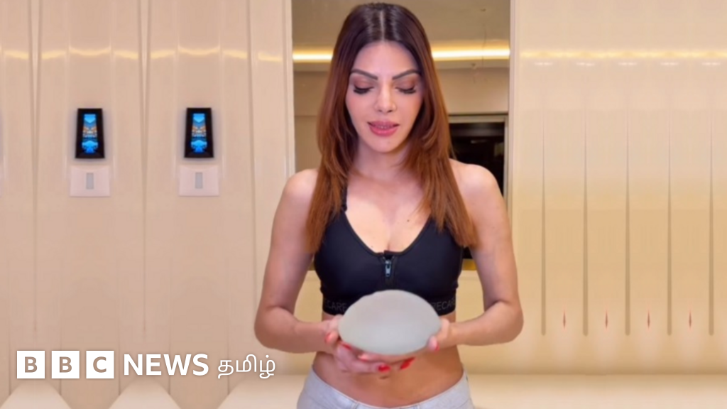 படக்குறிப்பு, நடிகை ஷெர்லின் சோப்ரா தனது செயற்கை மார்பகங்களில் ஒன்றின் எடை 825 கிராம் என்று கூறியுள்ளார்.