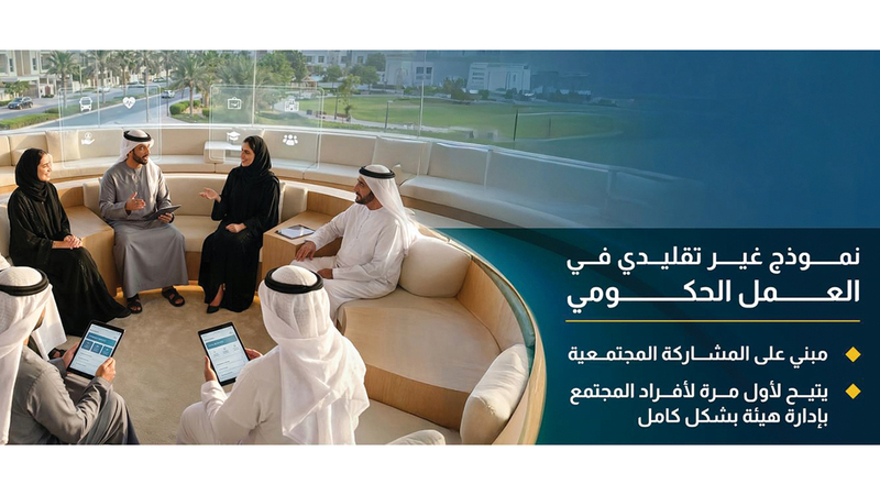 وتعتبر «الهيئة الافتراضية بإدارة المجتمع» نموذجاً غير تقليدي في العمل الحكومي المبني على المشاركة المجتمعية، حيث يتيح النموذج، للمرة الأولى، لأفراد مجتمع الإمارات، من أصحاب المهارات والكفاءات، إدارة الهيئة بشكل كامل، حيث سيُعين المدير العام والفريق المعني من أفراد المجتمع بصورة دورية لإدارة الهيئة، والعمل على مهامها، وتطوير مخرجاتها ذات القيمة الحقيقية التي تخدم الوطن.