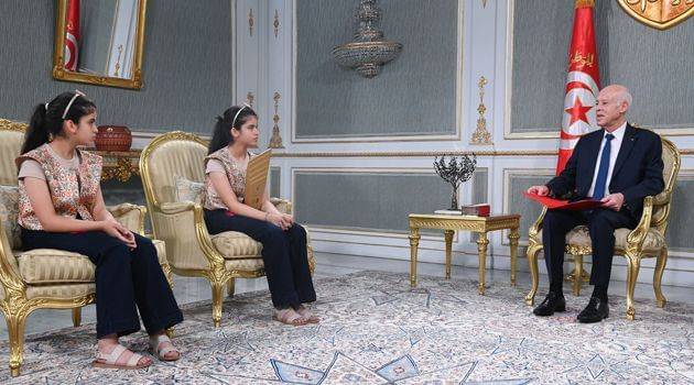 الرئيس التونسي يستقبل التوأم بيسان وبيلسان كوكة بطلتي تحدي القراءة العربي 2025